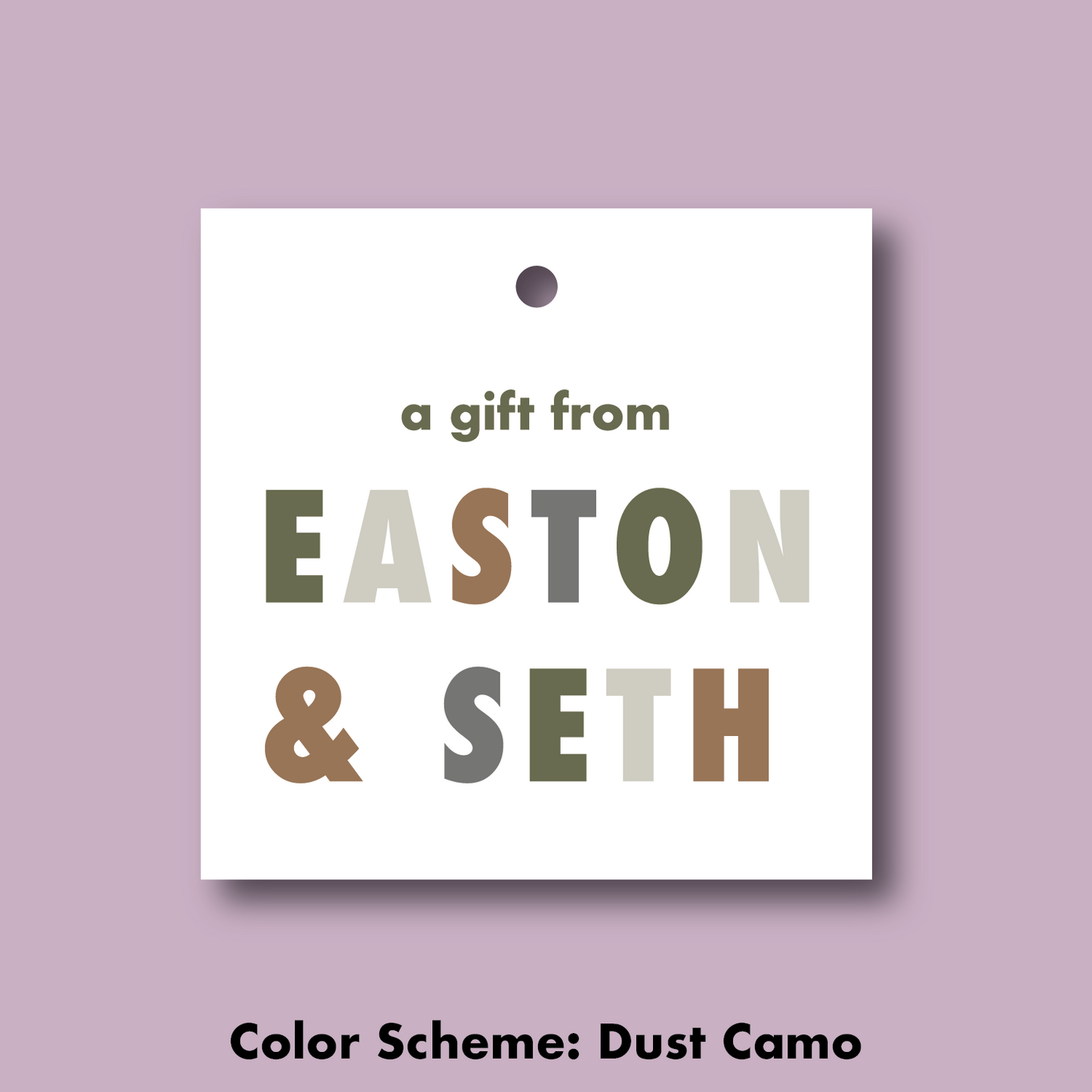 Add a personal touch to every present with our custom "A Gift From" gift tags! These colorful, personalized gift tags are the perfect way to make your gifts stand out and are perfect for girls with three rainbow colorways. Each 2.75” custom tag features "A Gift From" followed by your name, your kids names or family name, making every package feel extra special.