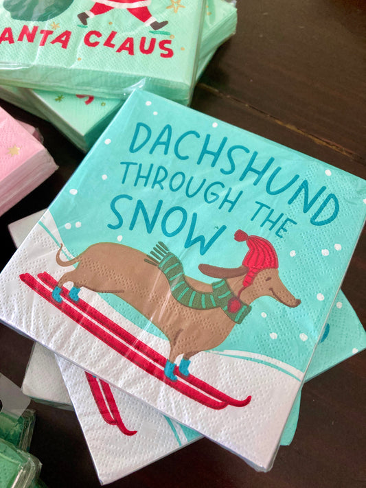 Dachshund Through the Snow | Funny Christmas Cocktail Napkins