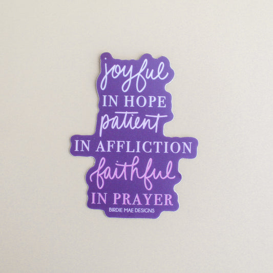 Joyful in Hope Patient in Affliction Faithful in Prayer Sticker
