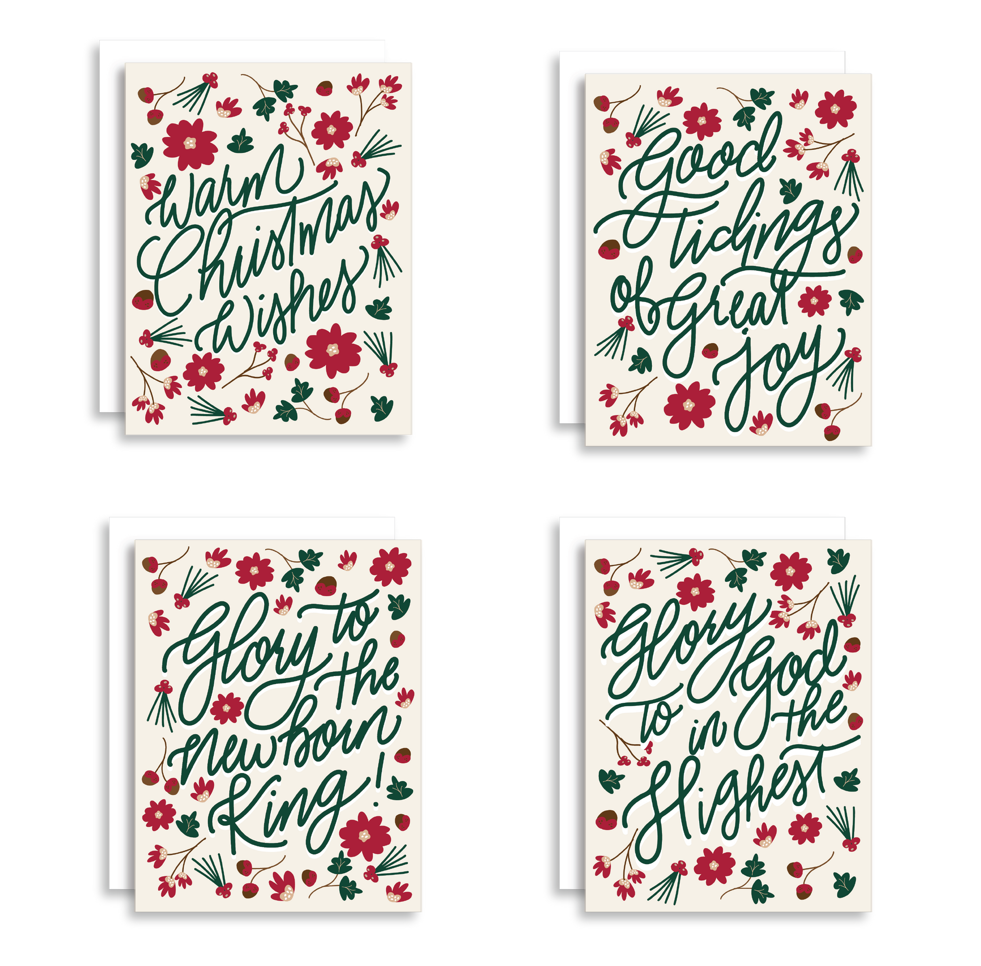 Celebrate the holiday season in style with this festive Christmas Greeting Card Bundle! Designed with beautiful holiday florals and made in the USA, this card set of 4 is perfect for spreading love and joy this season. Blank inside for your own special message!