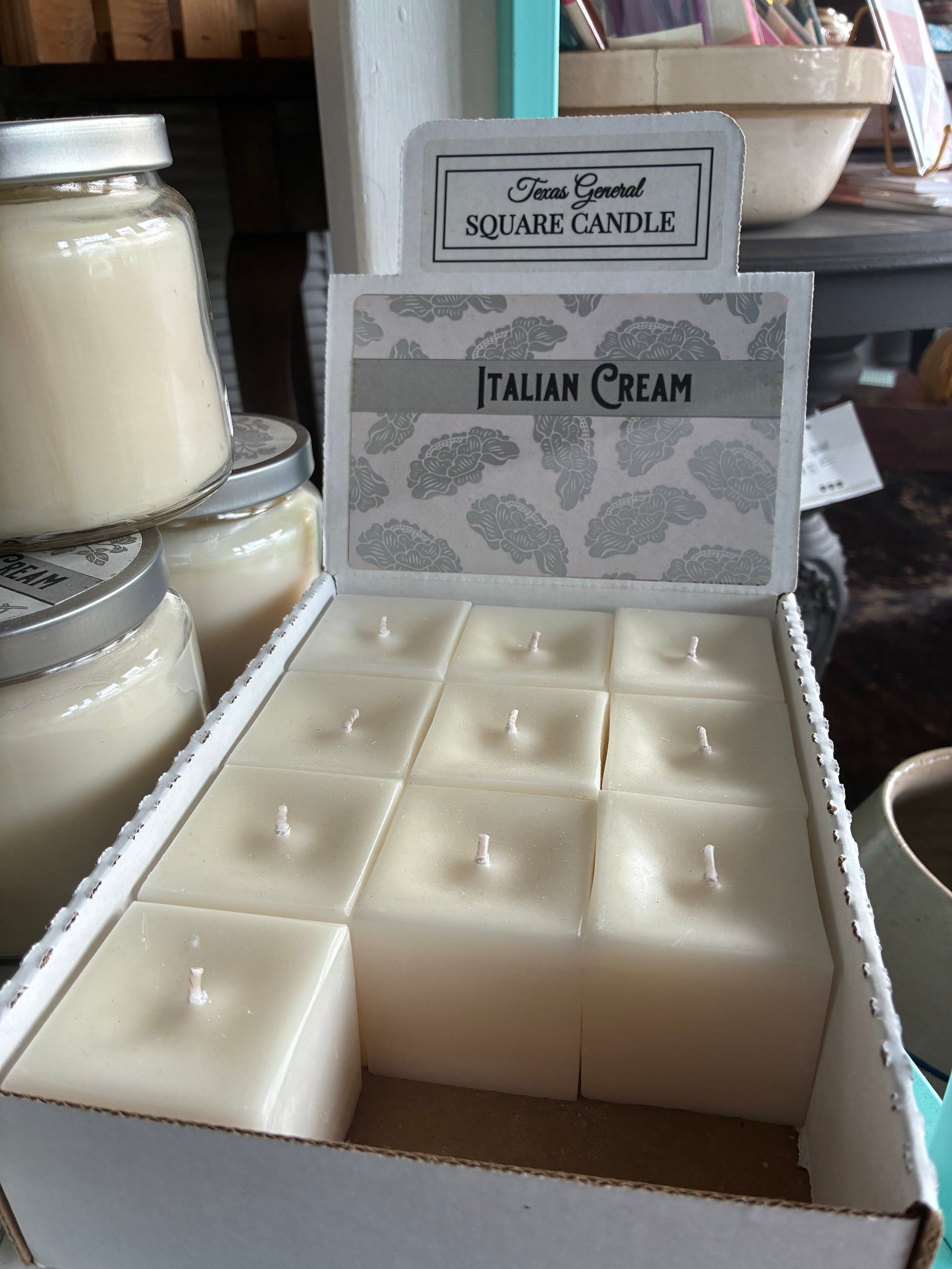 Italian Creme Texas General Square Candle | Coconut, Butter & Cream Scent