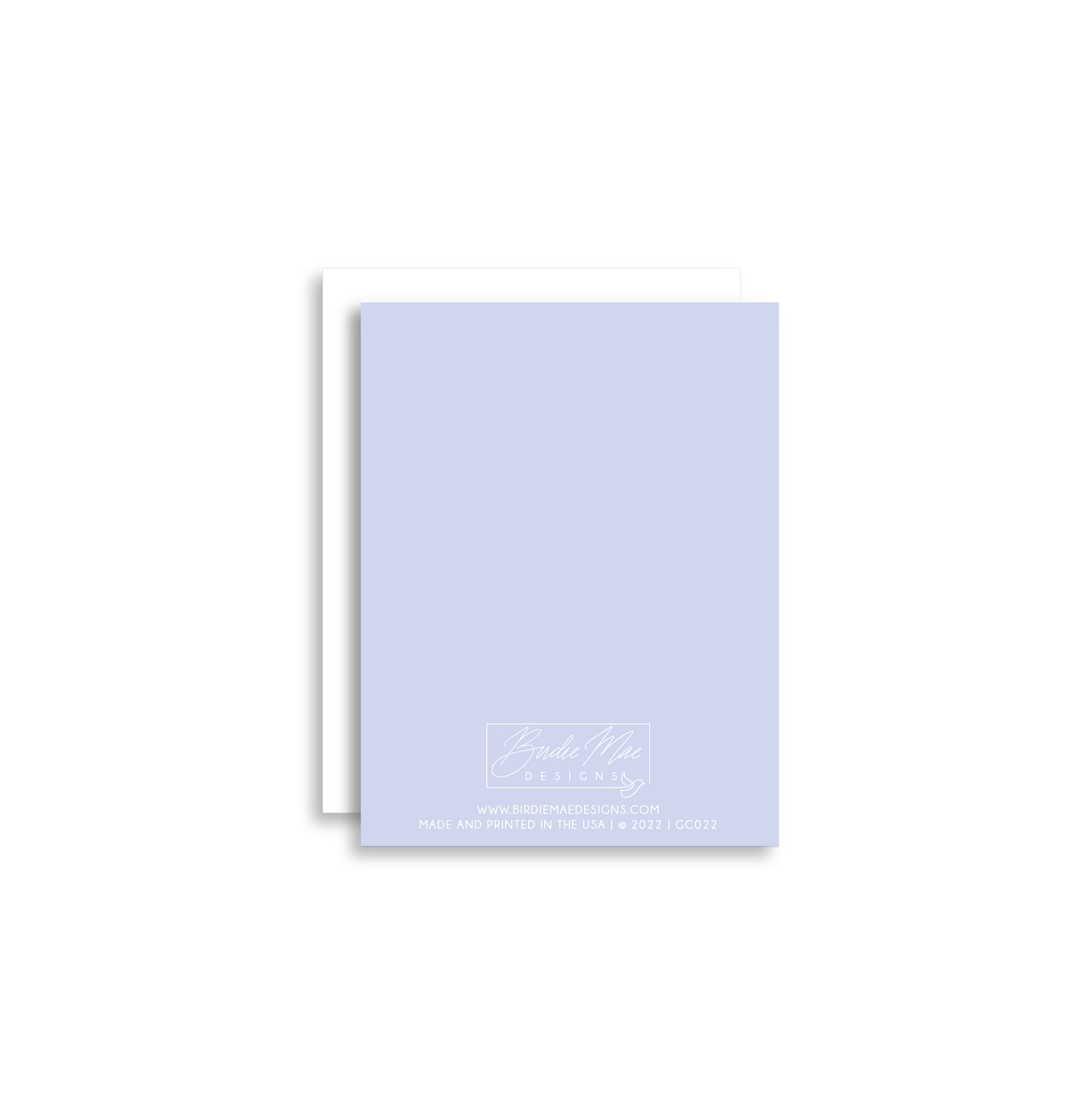 A blue birthday card perfect for any guy in your life! Each card is folded to 4.25" tall by 5.5" wide, is blank inside and comes with a matching white envelope. Cards are packaged in cellophane sleeves.
