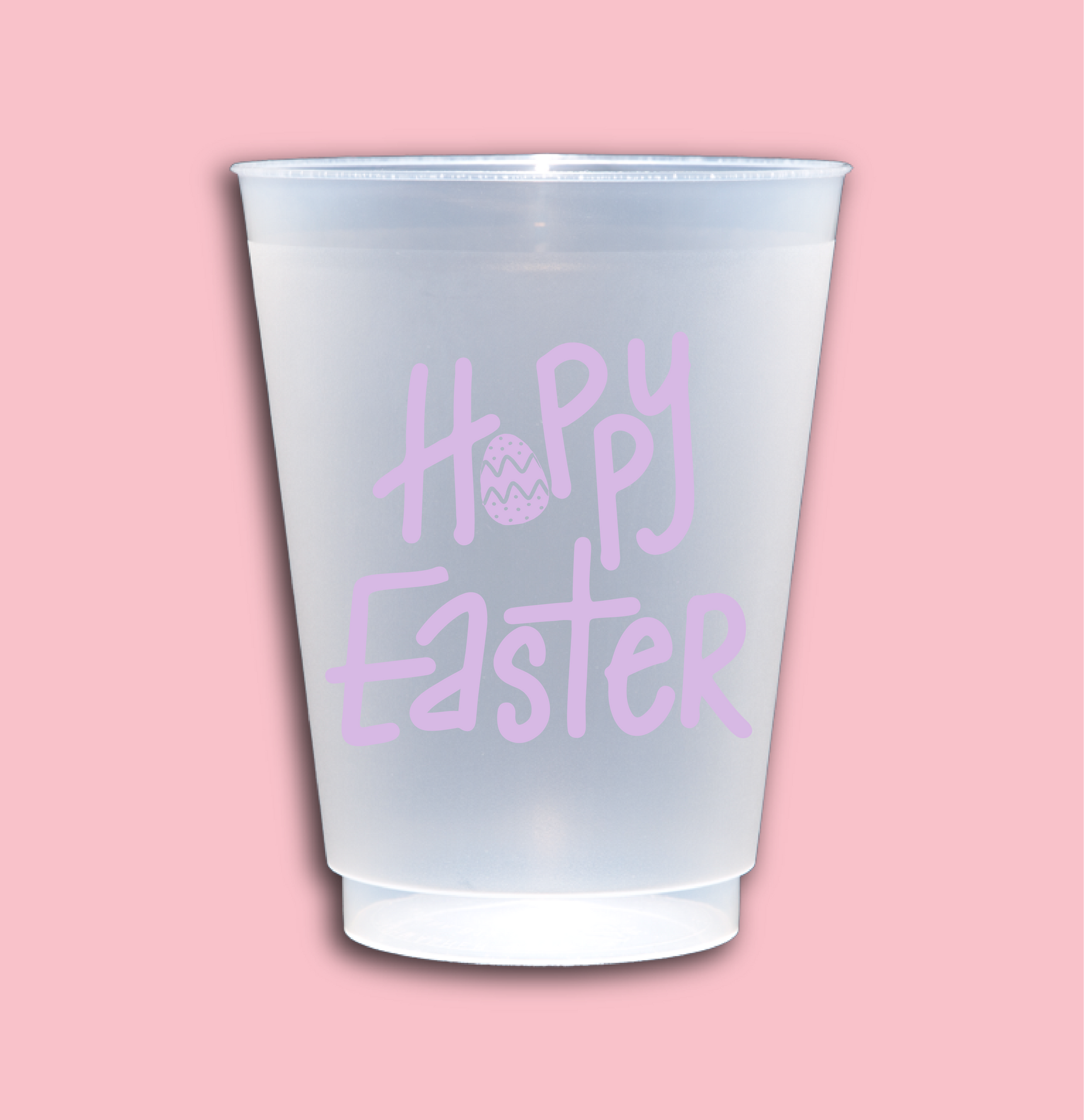 Make your Easter celebrations extra special with our charming "Hoppy Easter" Party Cups! These frosted shatterproof cups feature a delightful "Hoppy Easter" design on one side and an adorable floppy-eared bunny on the other, both printed in a soft lilac purple ink. Perfect for Easter egg hunts, brunches, or springtime gatherings, these cups add a festive and cheerful touch to any occasion.