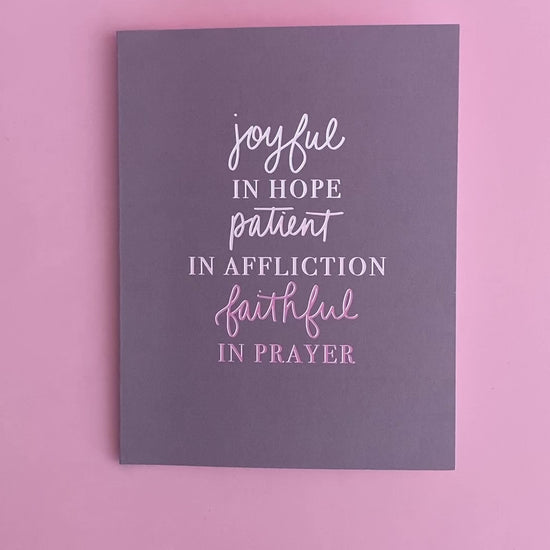 Joyful in Hope, Patient in Affliction, Faithful in Prayer Greeting Card | Life Motto Collection