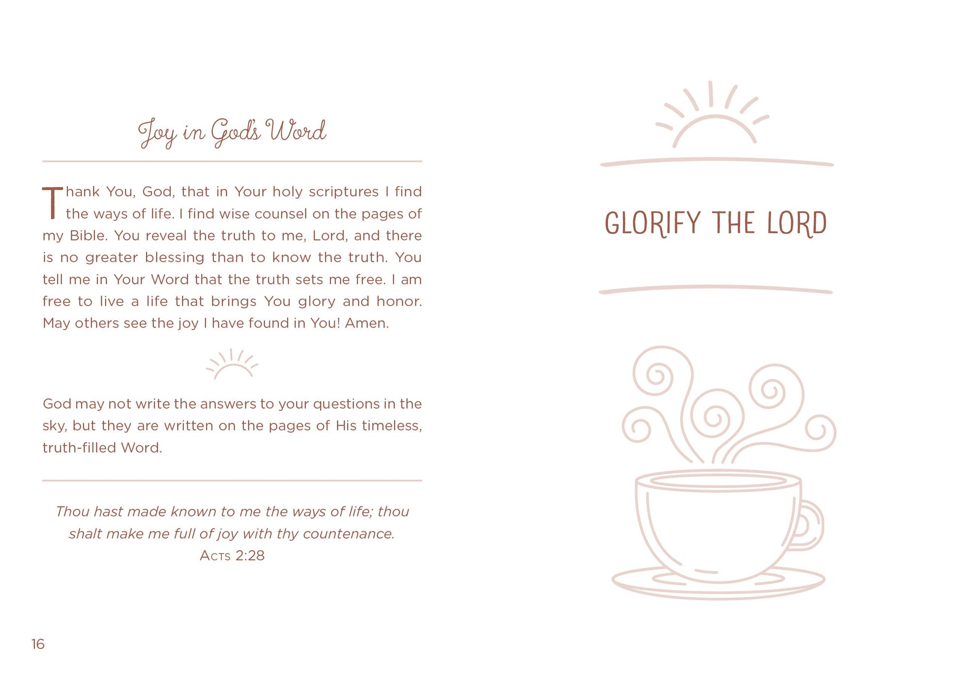 What better way to guarantee a good morning than to spend time in prayer? Mornings with God encourages women to do just that to set aside a few minutes each day for quiet time with God. Dozens of topically arranged, faith-building prayers are accompanied by inspiring devotional thoughts and scripture selections from the beloved King James Version of the Bible. The just-right-sized readings will fit perfectly into the busy morning routines of women of all ages, promising a great start to any day of the week!