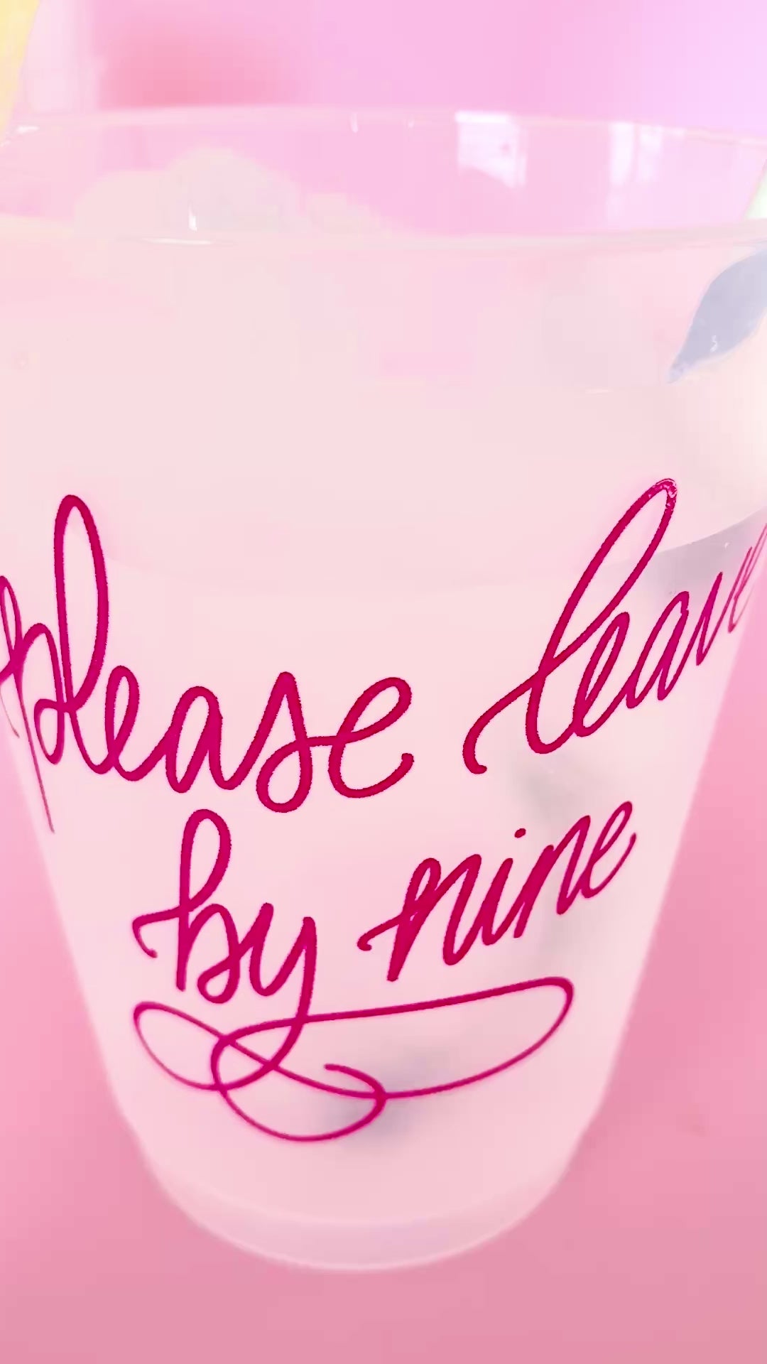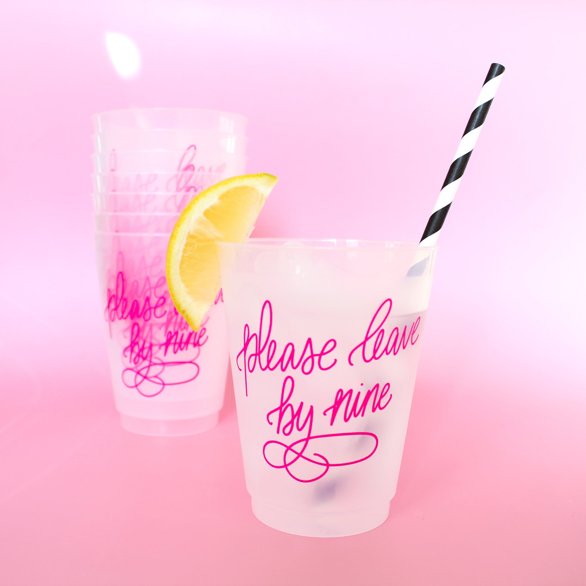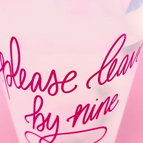 Our “Please Leave by Nine” Party Cups are made for hosts who love a good cocktail—but love a reasonable bedtime even more. Featuring bold hot pink lettering, these funny reusable party cups are perfect for girls’ night, birthday parties, book club, bachelorette weekends, or any gathering where everyone knows they’re definitely not in their 20s anymore. Stylish, shatterproof, and unapologetically honest, these cups add the sass while keeping cleanup easy!
