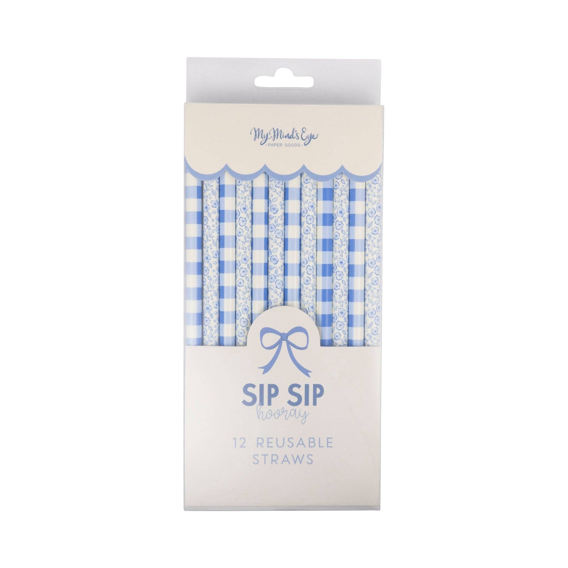 Welcome spring sipping with these charming reusable straws, designed to add a fresh pop of pattern to Easter tables, Mother’s Day brunches, and sunny spring celebrations. Featuring a soft blue plaid accented with delicate floral details, these reusable straws bring effortless style to cocktails, iced coffee, lemonade, and festive drinks alike.