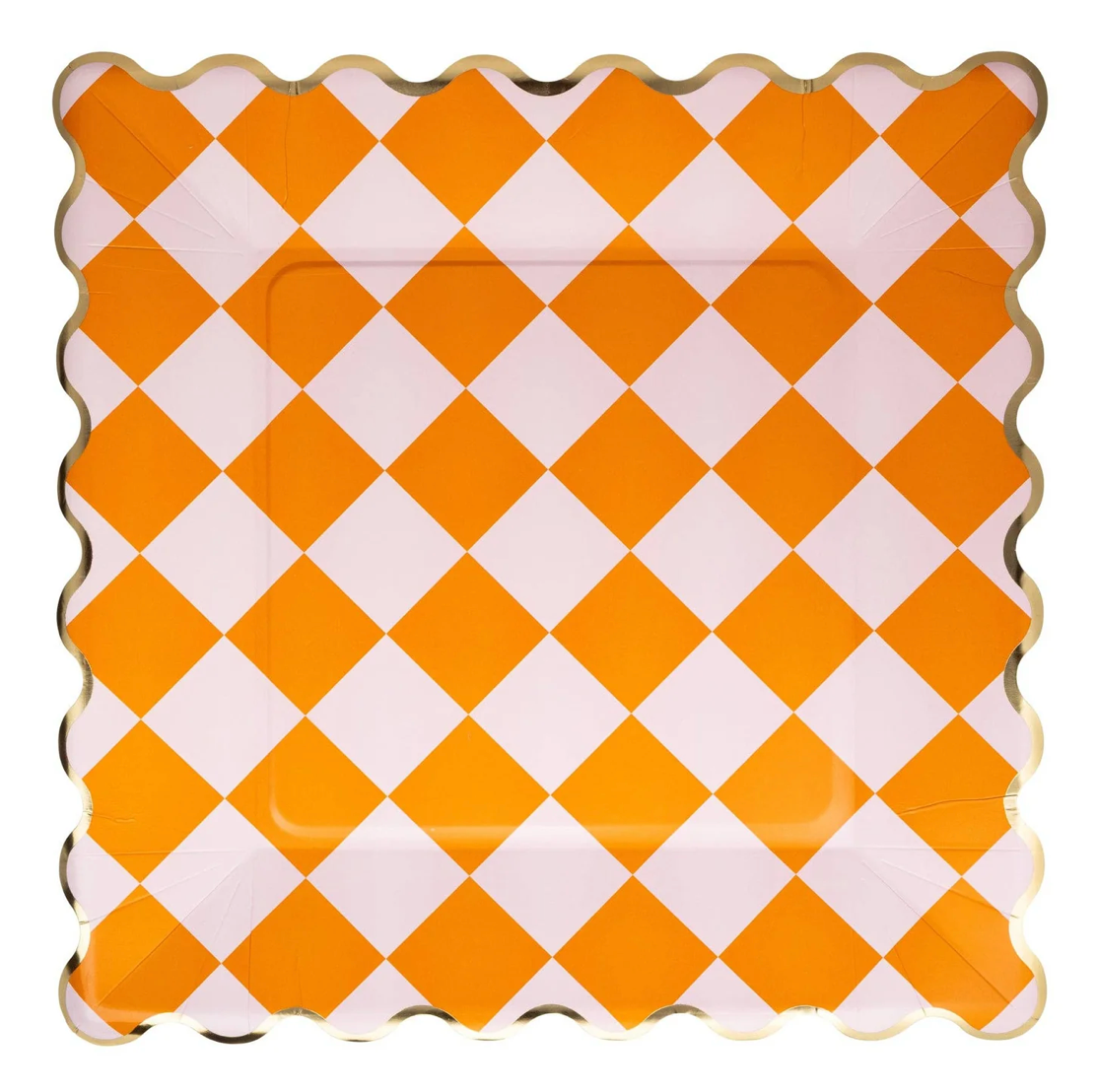 Pink & Orange Checkered Dinner Plates (11") – Bright, bold pattern for a fun seasonal table.