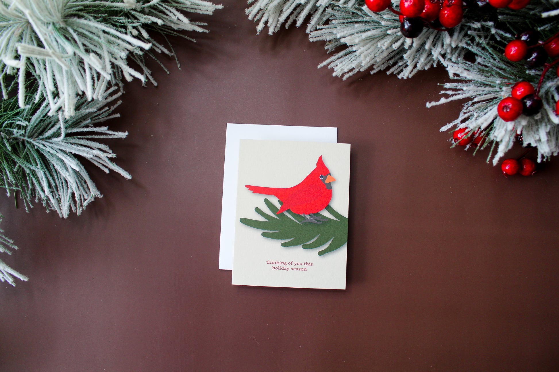 Thinking of You This Holiday Season Cardinal Red Bird Christmas Greeting Card