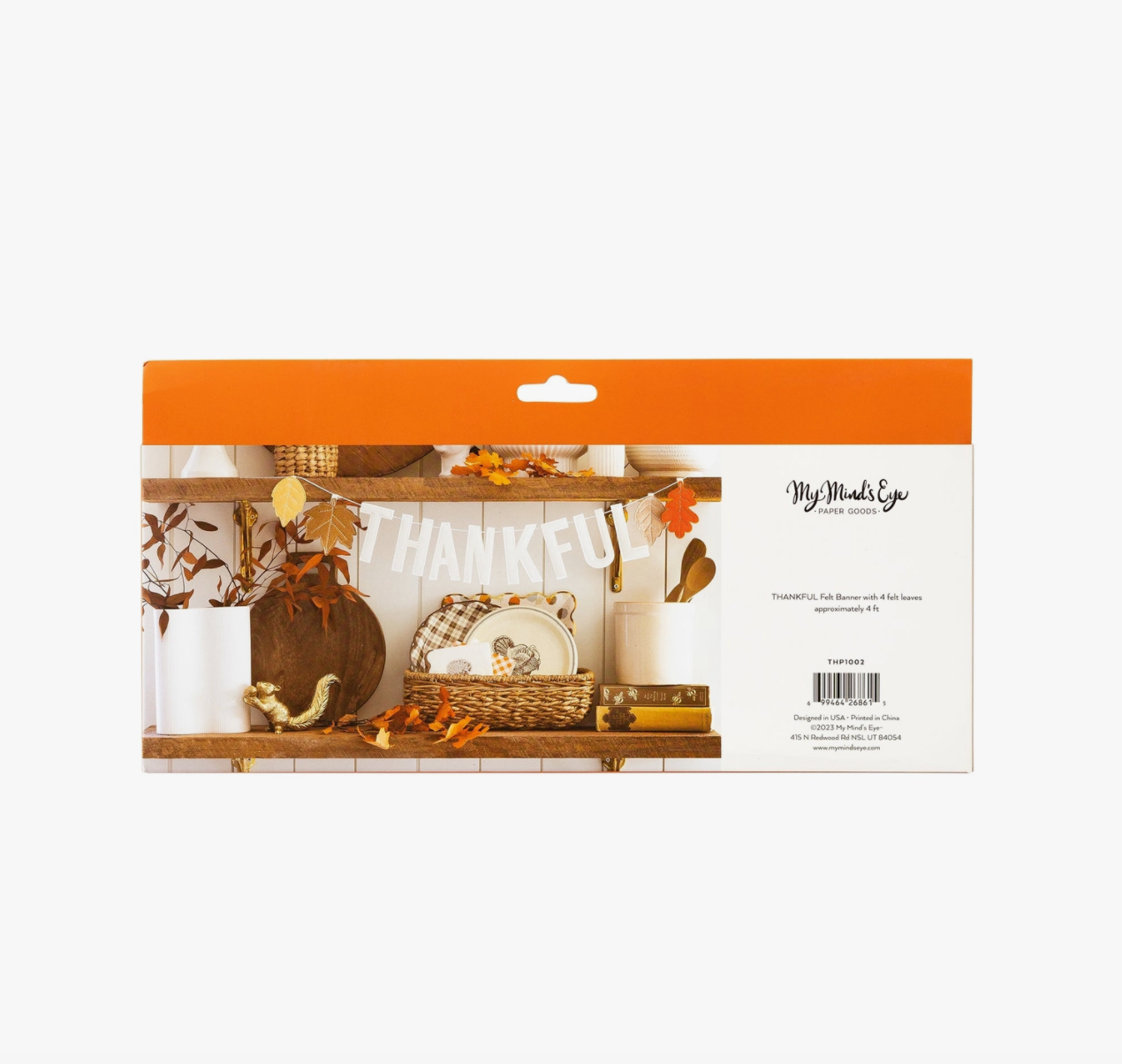 Celebrate your gratitude this Thanksgiving with this thankful felt banner. Featuring colorful fall leaves and felt letters that spell the sentiment "thankful," this banner is the perfect addition to your decor this November!