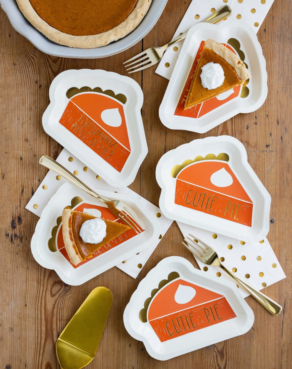 Have your pie and eat it to this Thanksgiving with our cutie pie plates. These shaped plates are accented with gold foil and are the perfect way to serve up a slice or two of holiday pie this year. Each set contains four plates of both sayings: "Cute Pie" and "You Wanna Piece of Me?"